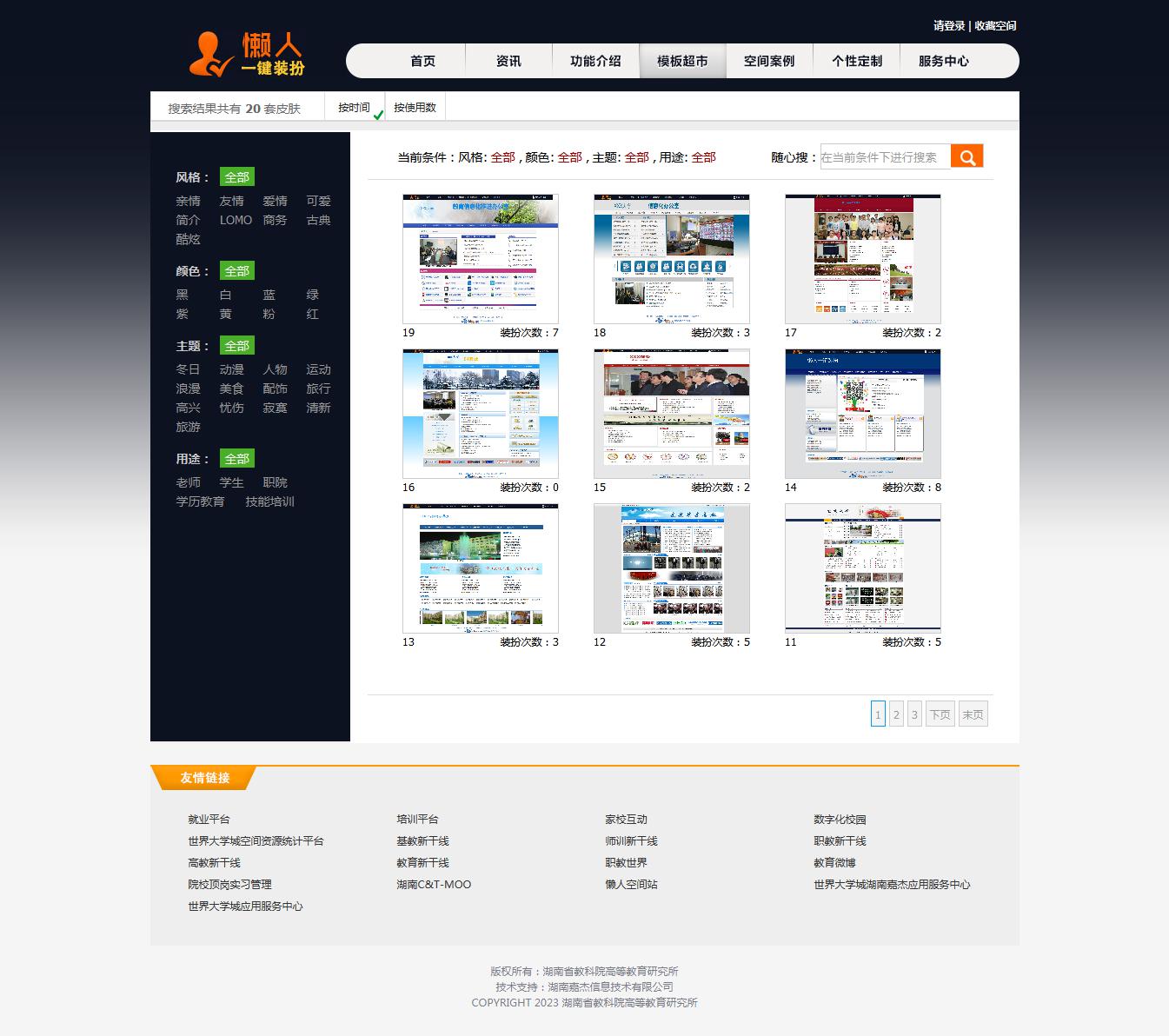 懶人一鍵裝扮系統(tǒng)是為世界大學(xué)城空間量身打造的一款一鍵式建設(shè)及美化工具。該工具為不僅為空間不同角色用戶,如:學(xué)生、老師、領(lǐng)導(dǎo)、職能處室提供了多樣性空間模板選擇,而且可以直接同步空間應(yīng)用功能,使欄目建設(shè)、文章發(fā)布、導(dǎo)航建設(shè)等功能都可以在該工具上一站完成。該工具為用戶提供了一個無需了解HTML、CSS、PS等代碼,無需學(xué)習(xí)計算機(jī)使用軟件,就可以快速打造一個美觀實用的的空間,解決了用戶自主建站耗時長、專業(yè)要求高、操作復(fù)雜等問題。