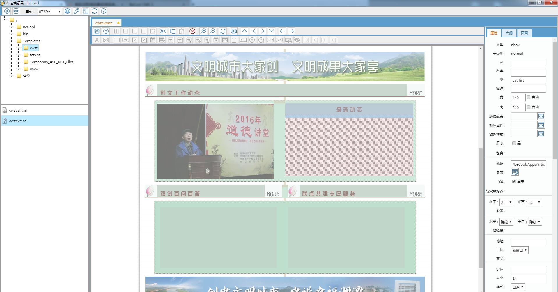 可以通過拖拽來實(shí)現(xiàn)頁(yè)面布局,相比 Dreamweaver 更為精準(zhǔn)。.vmcc 文件不僅可以做完整頁(yè)面,也可以做部分頁(yè)面,還可以做組件,讓你以搭積木的方式來完成工作。