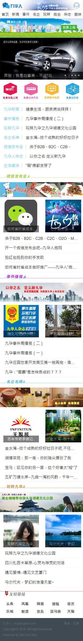 “九華人”微信公眾號和微網(wǎng)站是由湘潭市貝一科技科技有限公司、湖南云擎科技及智慧九華綜合管理中心三方共同設(shè)計(jì)開發(fā),此項(xiàng)目集合了新聞資訊類欄目和智慧九華的“事件上報(bào)”系統(tǒng),并將移動(dòng)網(wǎng)站與微信進(jìn)行了整合。