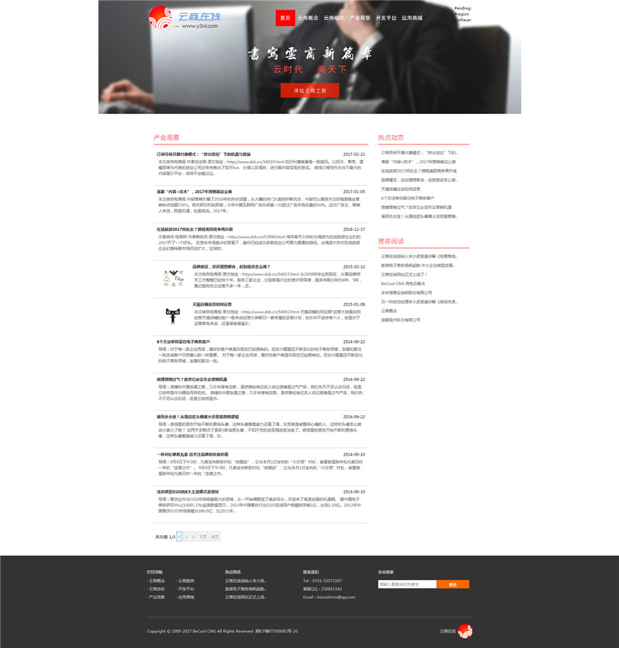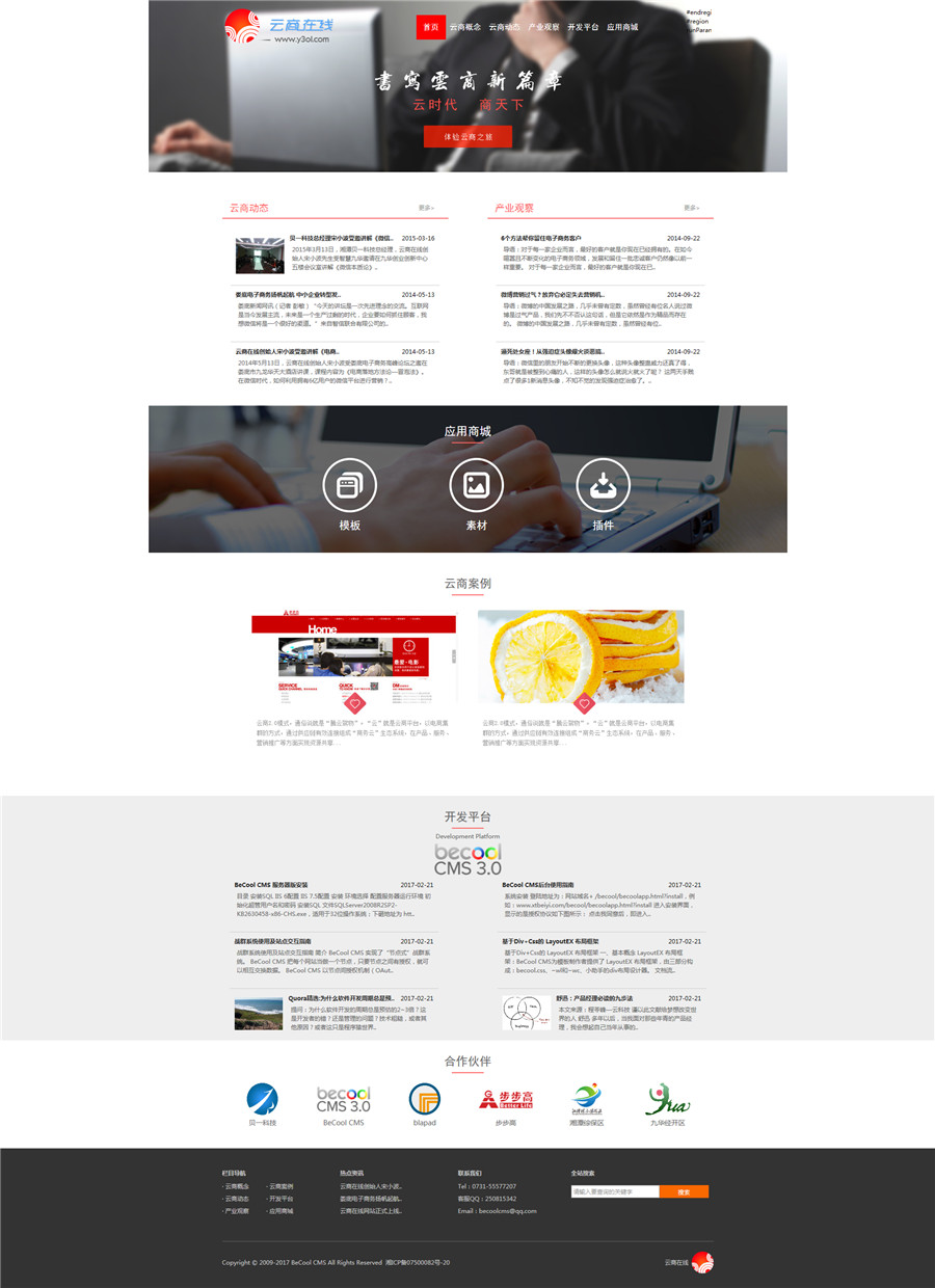 云商在線官網(wǎng)欄目包含:云商概念、云商動態(tài)、產(chǎn)業(yè)觀察、發(fā)開平臺和應(yīng)用商城。
